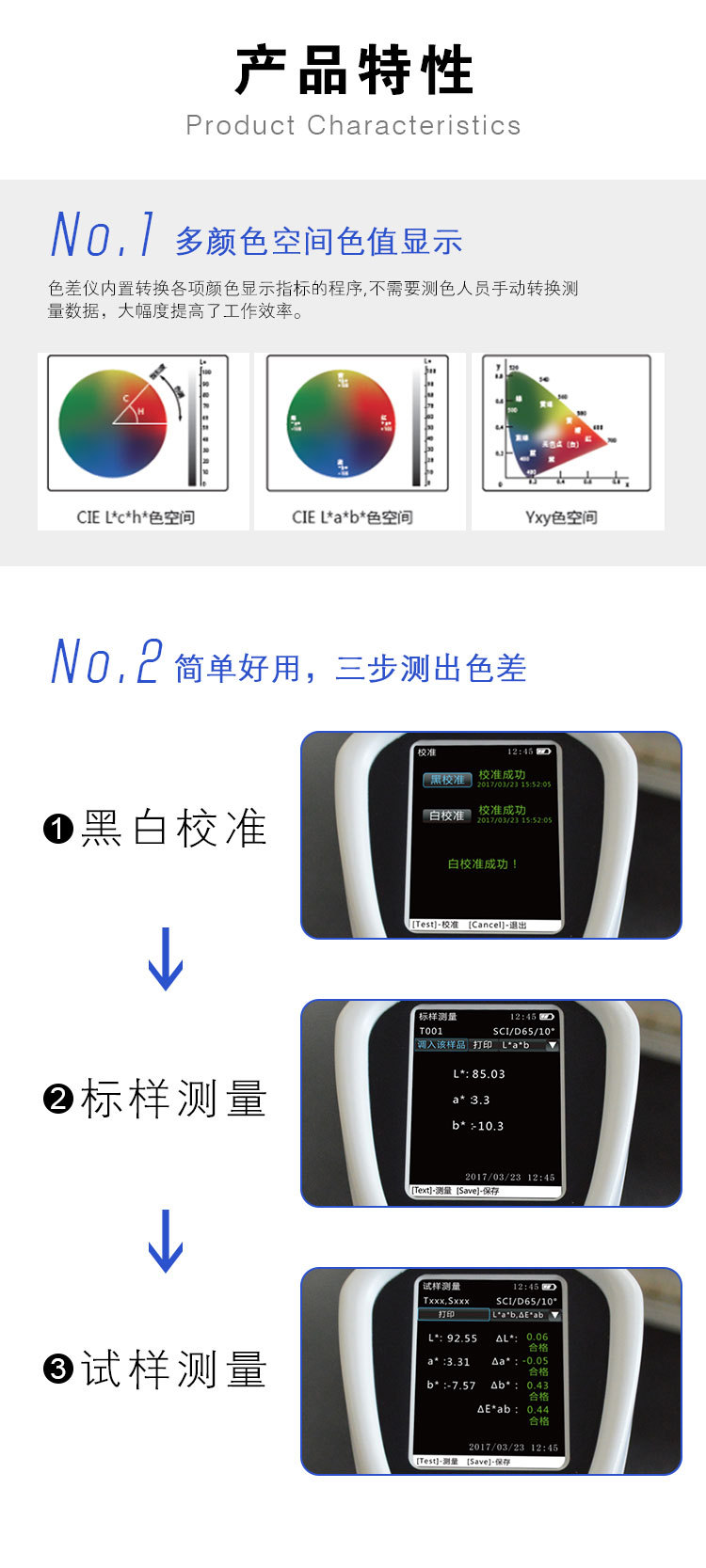 2、L*a*b、L*c*h、Yxy等多顏色空間色值顯示;