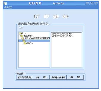 點擊文件選擇列表框中選取已有文件(文件名以樣品編號命名),點擊本窗體的打印預覽或打印按鈕,即可預覽或打印試驗報告。