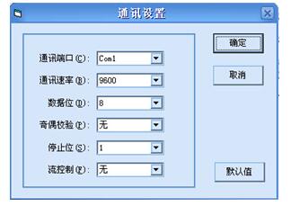 通訊端口可根據串口線所連接的計算機串口設置串口號。點擊確定按鈕,存儲新的設定值并退出本窗體。其它通訊設置在儀器出廠前已設置好,請勿隨意改動!點擊默認值按鈕可恢復初始設置。點擊取消按鈕,將不對設置進行修改并退出本窗體。