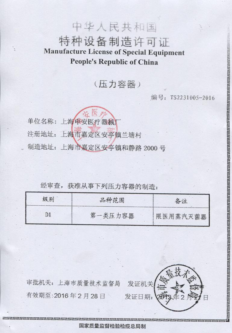 本品符合國家對壓力容器設(shè)計與制作的相關(guān)規(guī)定,并取得了食藥監(jiān)產(chǎn)品注冊證和消毒產(chǎn)品衛(wèi)生許可證,是我廠研制開發(fā)的新一代手提式滅菌器,其結(jié)構(gòu)先進可靠,具有快捷簡便的操作方式和功能齊全的控制系統(tǒng),在安全控制上;設(shè)置了鍋內(nèi)有壓力自動鎖蓋及誤操作合蓋不升壓的裝置。本產(chǎn)品采用優(yōu)質(zhì)不銹鋼材料精制而成,滅菌指標達到國家醫(yī)用手術(shù)級標準,是各醫(yī)療衛(wèi)生、大專院校、食品化工、生物科研等單位對器械、敷料、藥液、食品器皿、培養(yǎng)基等物品進行消毒滅菌的理想產(chǎn)品。